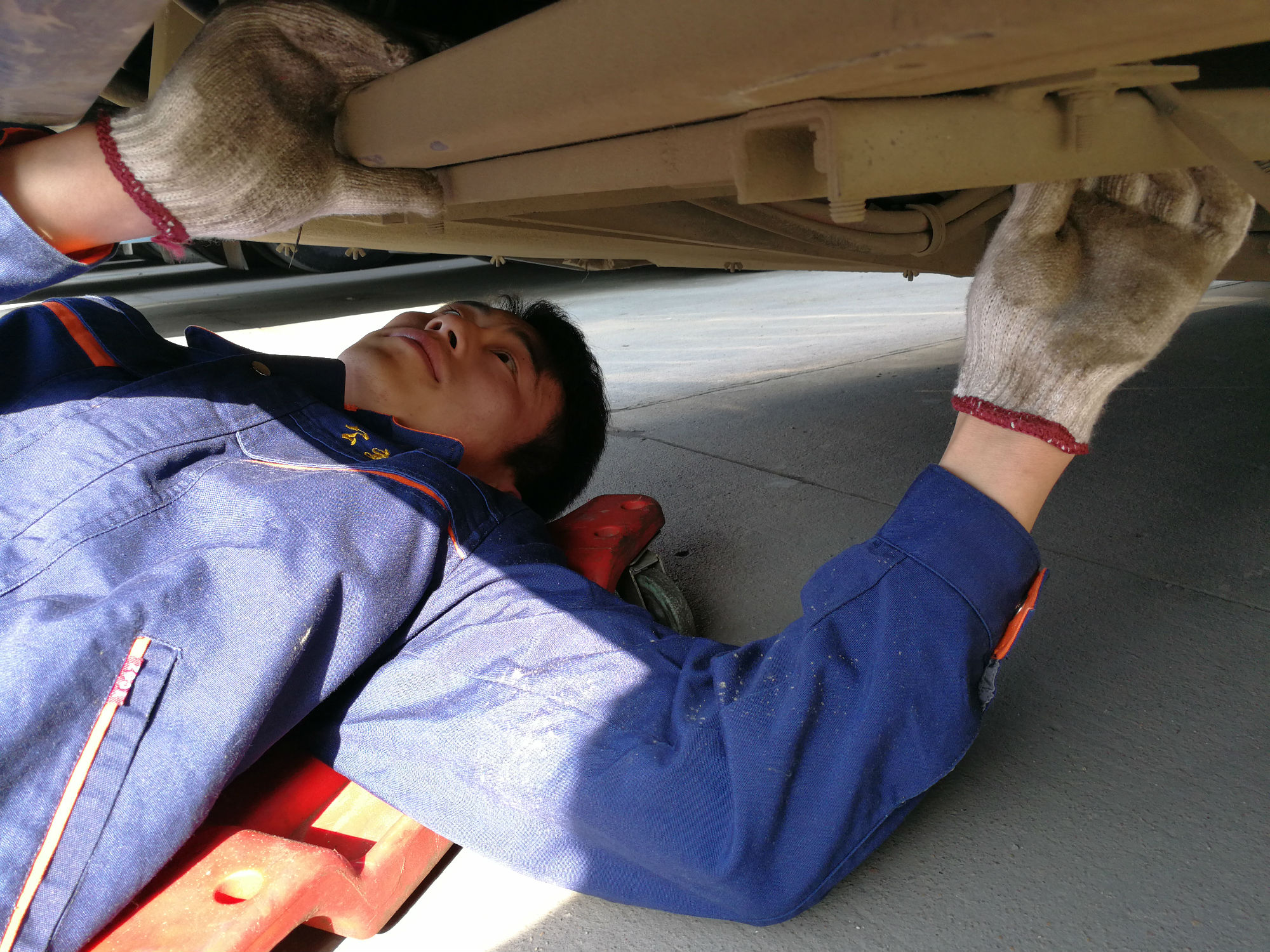 冬日的風(fēng)帶著刺骨的寒意,建北車場一派忙碌,修理工趙祥增早早地來到車場,仔細(xì)地協(xié)助駕駛員檢查每一輛車,確保車輛安全準(zhǔn)點(diǎn)發(fā)車?!摆w師傅,我的車又打不著火了,您來看看?!壁w祥增聽到后立即檢查維修,10分鐘后,車輛修好恢復(fù)運(yùn)營。在寒風(fēng)中忙碌了一上午的他剛剛坐下吃飯,忽然接到電話,一輛車在路上出了故障,他立即放下碗筷,第一時(shí)間趕到現(xiàn)場,沒有地溝,他就直接躺在地上維修,隔著棉衣仍能感受到地面?zhèn)鱽淼拇坦呛?,一個小時(shí)過去了,背上的汗水濕了干干了濕,手也凍僵了。最后,車子終于修好了,趙祥增從車下爬出來,他的衣服沾滿了油污,衣服也濕透了,但是,臉上留下了開心的笑容。