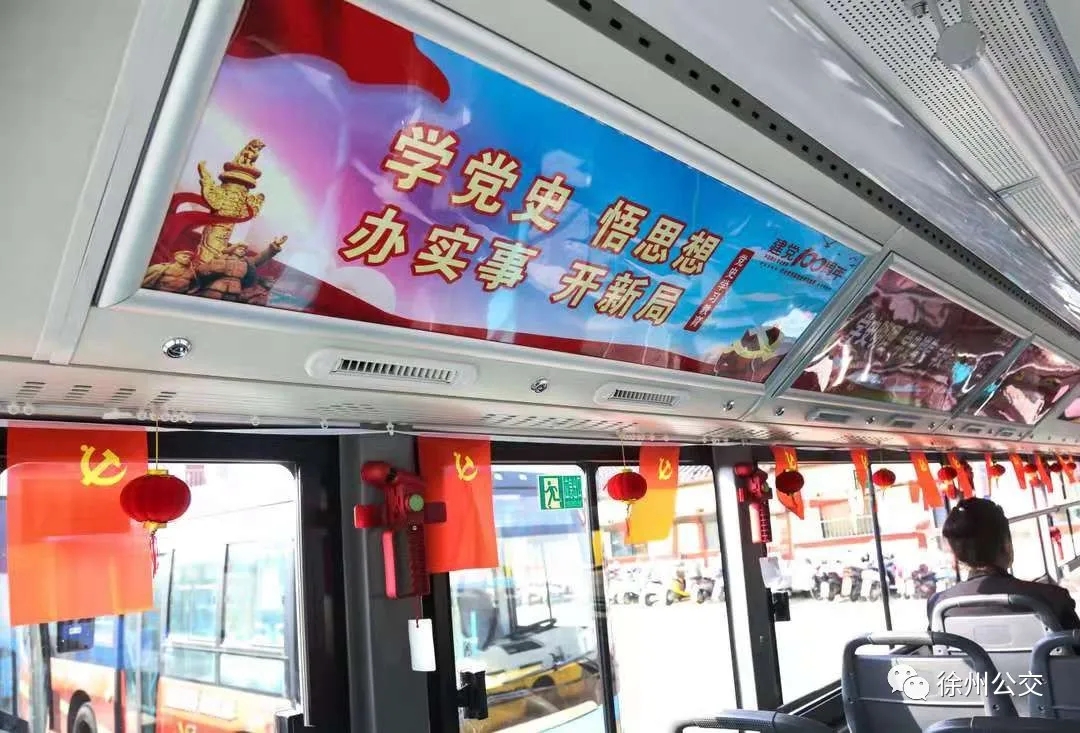 為深入推進黨史學習教育,徐州公交集團精心打造“慶百年?學黨史”主題車廂,把黨史學習教育的鮮活素材搬進了公交車內,好似流動的黨史知識課堂。