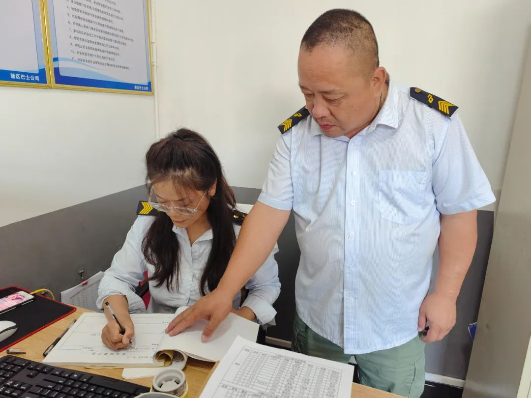 天還未亮,19路調(diào)度室里燈火通明,調(diào)度員黃靜已經(jīng)打開電腦開始了一天的工作,駕駛員陸續(xù)到達,車隊運管員鄒晶一邊叮囑著駕駛員安全注意事項,一邊對其進行酒精測試,一切井井有條,忙而不亂。首班車駕駛員紀(jì)彤仔細檢查車況、消毒、通風(fēng)等情況,車上、車下絲毫不敢疏忽,做好出車前的準(zhǔn)備。