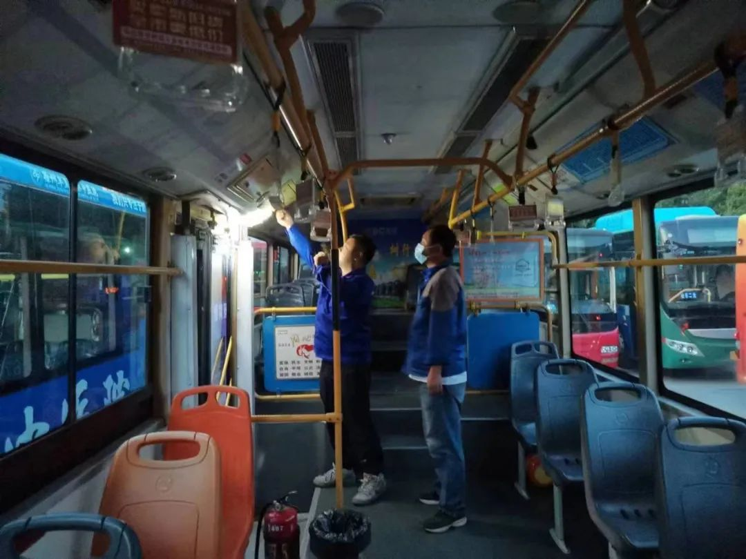 檢修人員在車輛回場后,逐輛進行檢修和調(diào)試,確保第二天能順利出車。而駕駛員宗浩一絲不茍地做著消毒工作,“雖然下班收車了,但現(xiàn)在是國慶節(jié)假期的特殊時期,而且疫情還沒有結(jié)束,如果公交車的消毒沒做好,那就是對乘客不負責(zé)。”