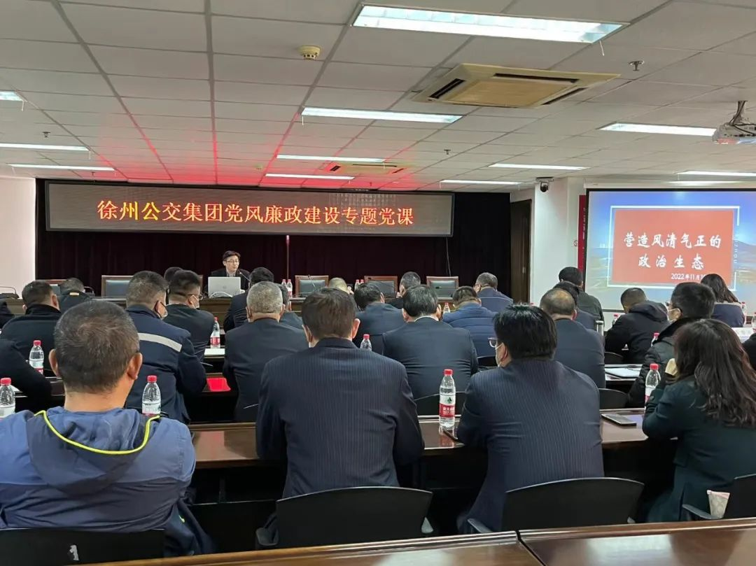 為深入學(xué)習(xí)貫徹落實(shí)黨的二十大精神,堅(jiān)定不移推進(jìn)全面從嚴(yán)治黨向縱深發(fā)展,營(yíng)造集團(tuán)風(fēng)清氣正的政治生態(tài),11月17日,徐州公交集團(tuán)開(kāi)展黨風(fēng)廉政建設(shè)專(zhuān)題黨課。公交集團(tuán)黨委副書(shū)記、總經(jīng)理袁夫松主持會(huì)議,集團(tuán)機(jī)關(guān)部室、基層單位負(fù)責(zé)人等50余人參加學(xué)習(xí)。