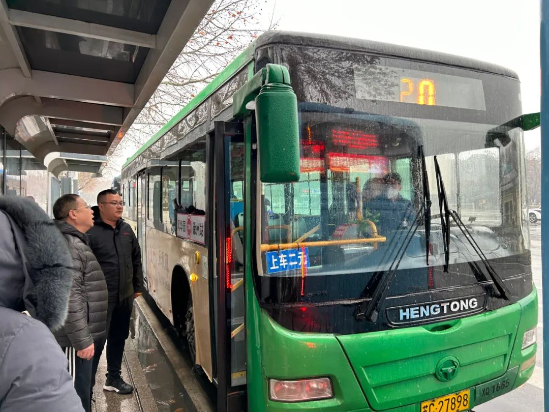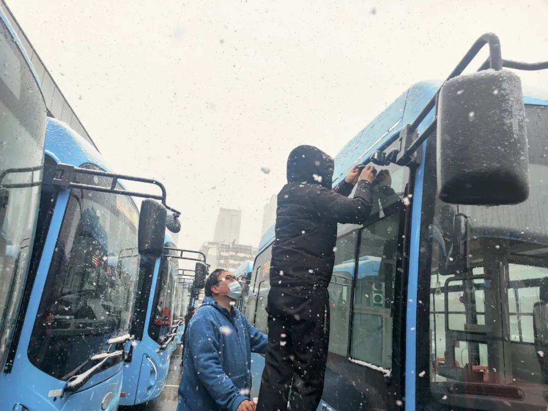 1月14日上午,徐州市氣象臺發(fā)布道路結冰黃色預警[Ⅲ級/較重],氣溫驟降,徐州迎來了2023年第一場冬雪。面對寒潮雨雪冰凍惡劣天氣,公交集團立即啟動特殊天氣應急預案,集團黨委委員、副總經理丁玉華帶領安全環(huán)保部人員上線檢查,基層單位分管安全負責人以雪為令,多措并舉做好寒潮雨雪大風天氣公交安全運營工作,保障市民安全便捷出行。