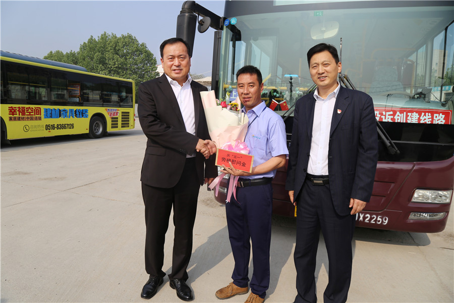 同時,蔣成彪和丁玉華帶隊分別看望慰問了10路楊鵬鵬、專1線邢運民、11路曹瑞國、19路閆翔、612路王超等5名省、市五一勞動獎?wù)孪冗M駕駛員。